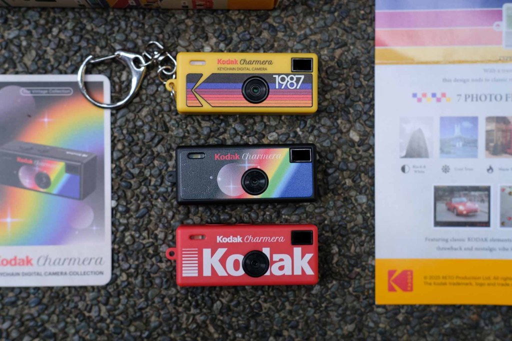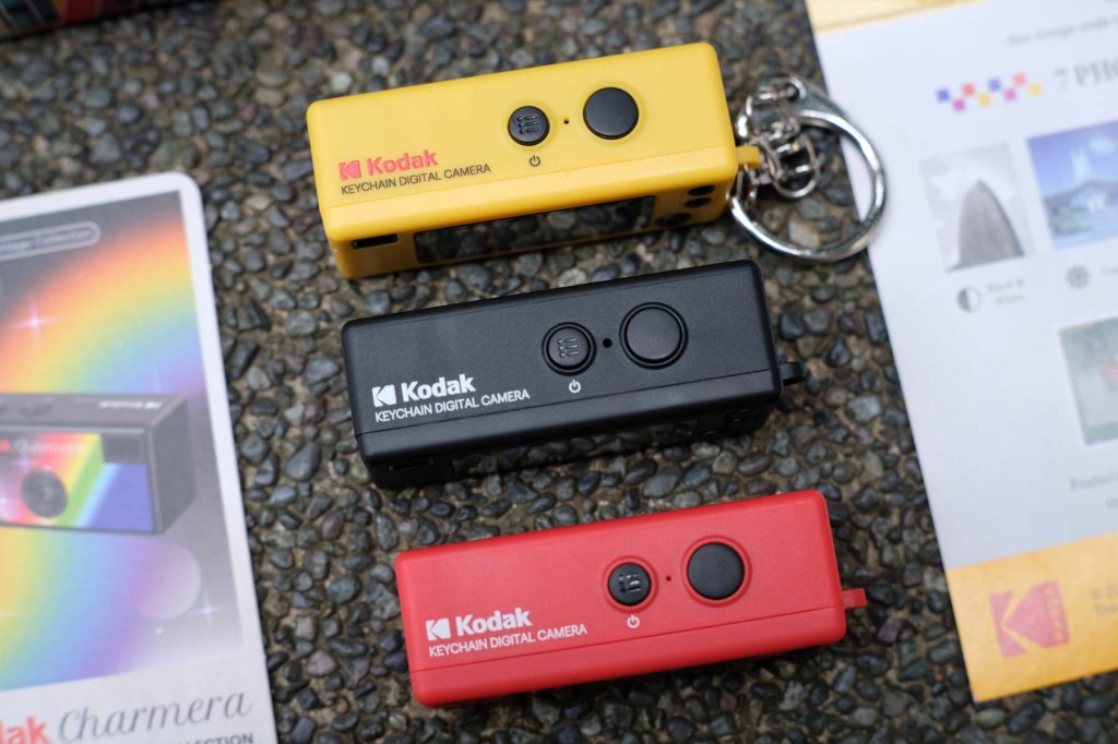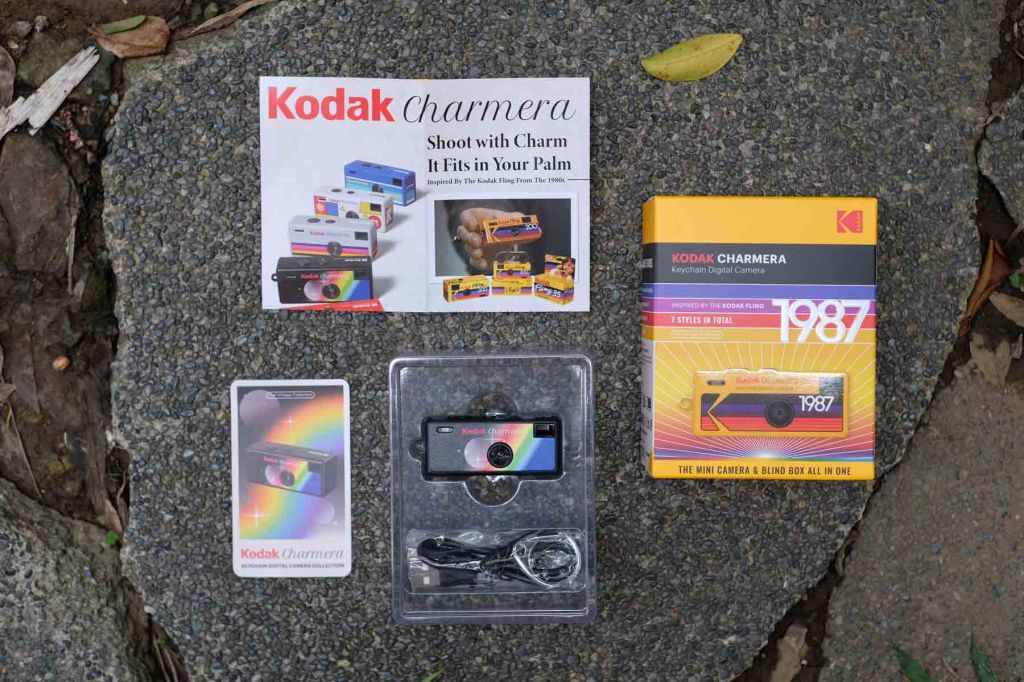 The Kodak Charmera is a palm size, 1.6 megapixel point-and-shoot digital camera. It is made out of plastic and is very fragile – i mean very lightweight. Marketed as a key chain camera, it comes in 7 unique vintage designs including a secret edition. All sold as surprise blind boxes. It is inspired by Kodak’s 1987 disposable film camera, the Kodak Fling. What’s in the box is the camera, a photo card of the model, a leaflet, USB cable and key chain.